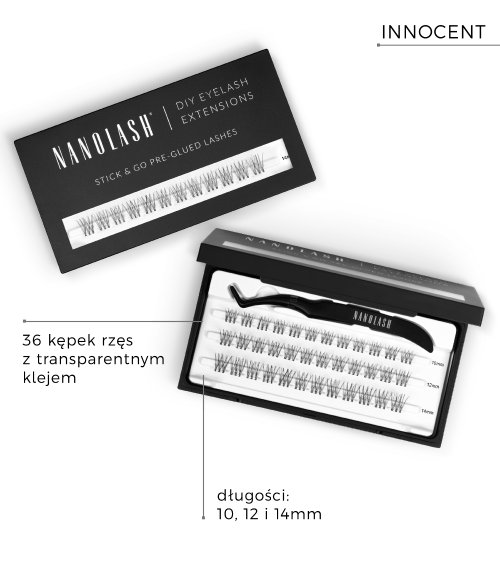 Innocent, to model sztucznych rzęs w kępkach, który zbiera pozytywne opinie ze względu na bardzo naturalne i zwiewne efekty, przypominające laminację rzęs. Kobiety są w 100% usatysfakcjonowane rezultatami i z chęcią wracają do tego stylu. Przedłużanie rzęs jeszcze nigdy nie było tak proste i przyjemne!